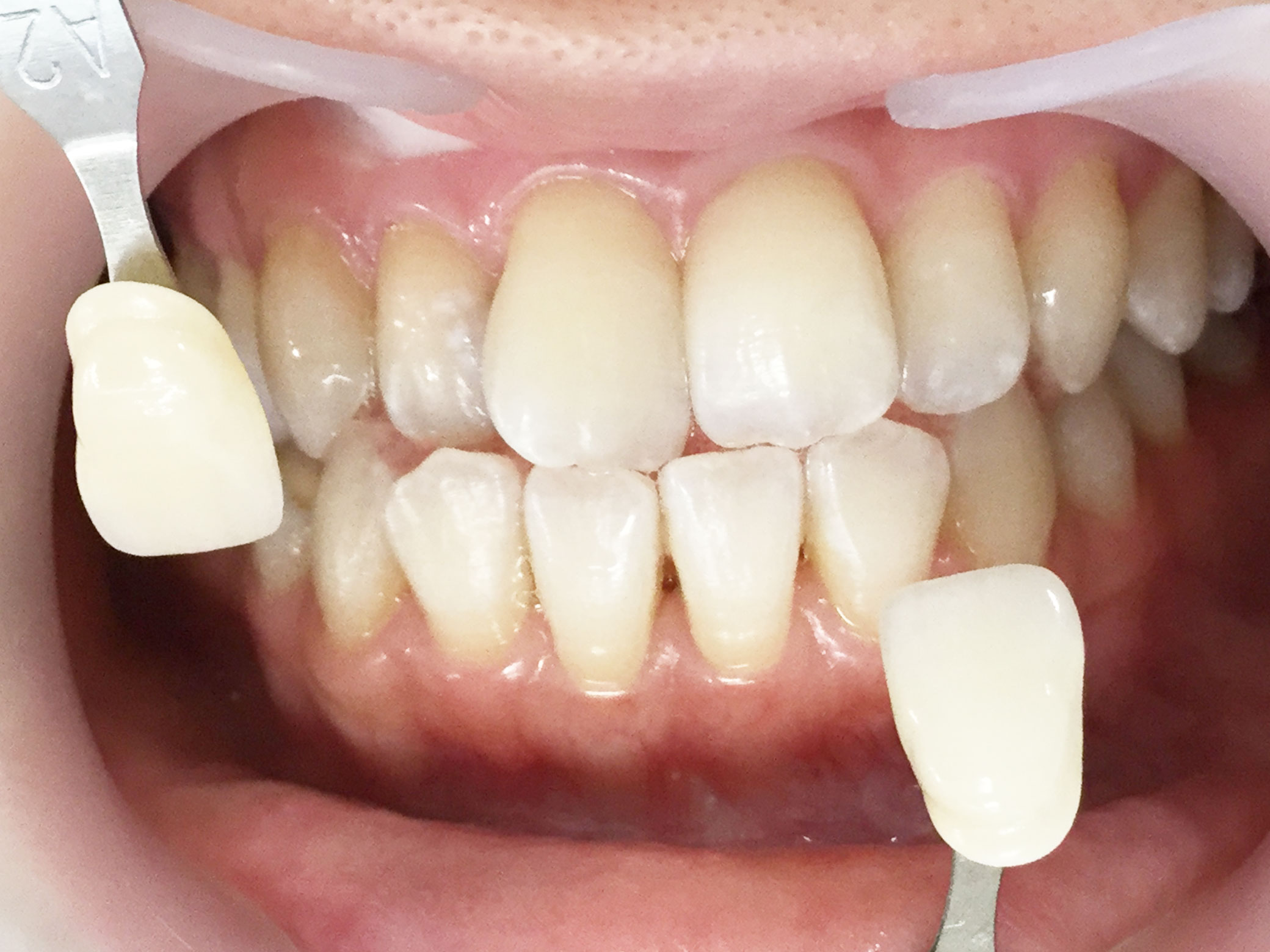 1)詰め物や被せ物は、ホワイトニングをしても白くなりません。